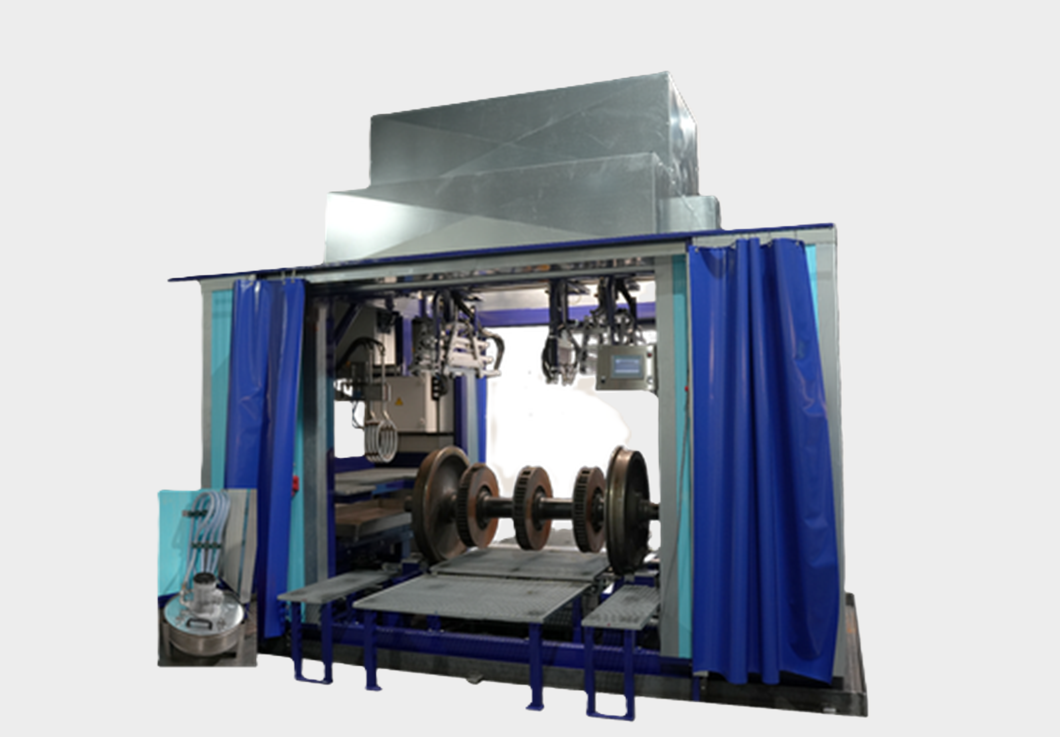 Die Rissprüfanlage zur Radsatzprüfung ist mit einem modularem Magnetisierungssystem für eine gezielte Prüfung verschiedener Bauteilbereiche ausgestattet: